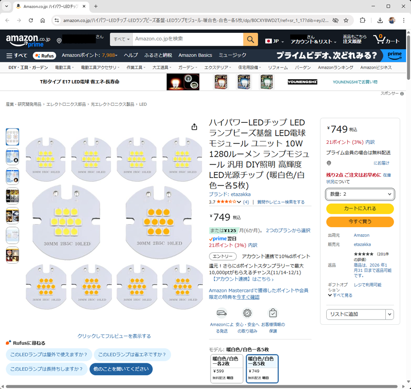 ちょうど自分でもLED照明を作っていたので、 興味本位から分解してみました。