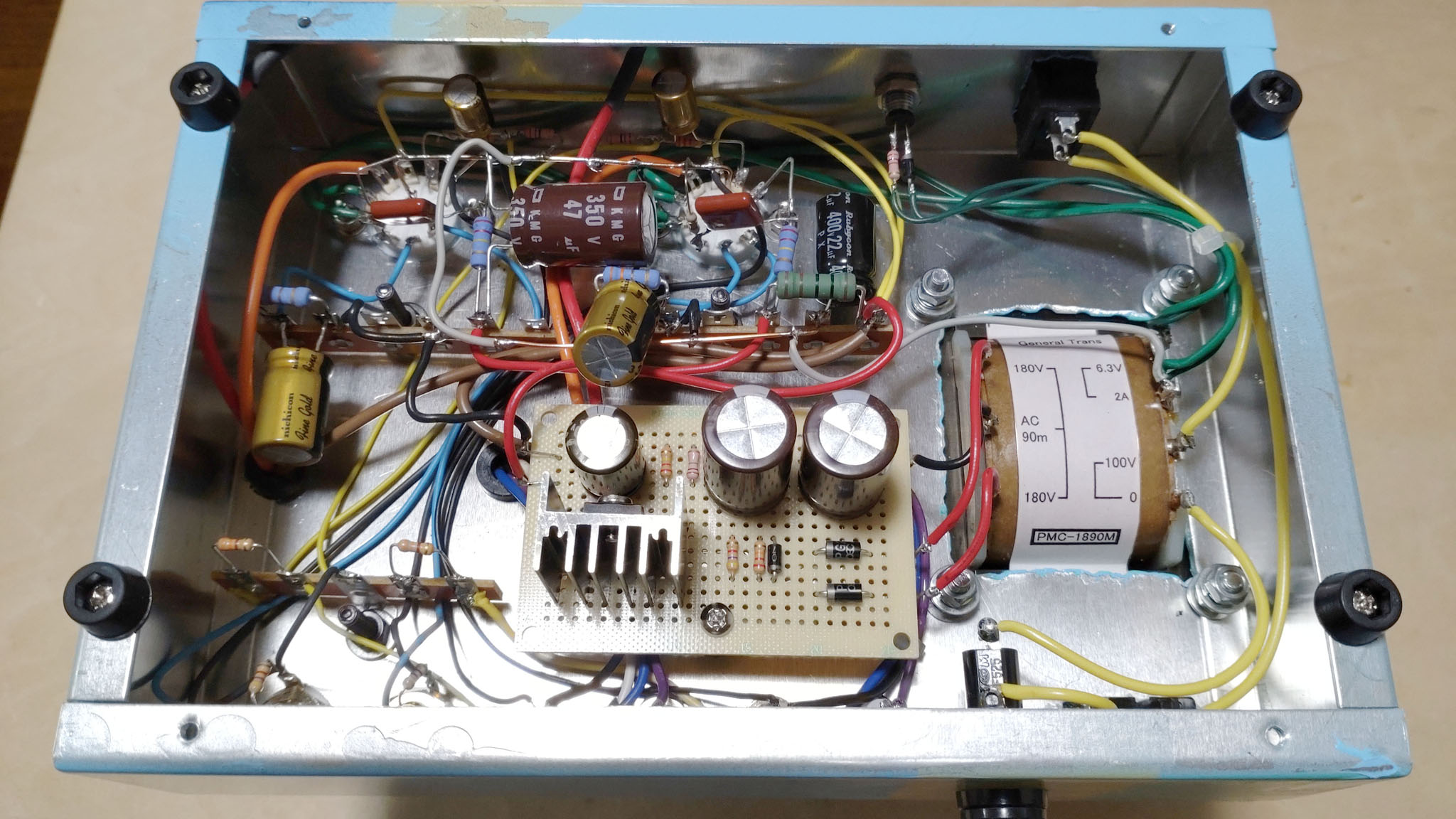 真空管 6BM8(ヤフオク等で1本1500円程度を想定) 出力トランス PMF-6WS 5K,7K(ゼネラルトランス 旧ノグチトランス) 電源トランス PMC-1890M 180V-0-180V AC90mA(ゼネラルトランス) アルミシャーシ O-48 200x140x50 板厚:1.5(ゼネラルトランス) 9ピン真空管ソケット(千石電商) RCA入力端子(秋月電子) SP出力端子(秋月電子) 電源SW(秋月電子) PLランプ(秋月電子) ヒューズホルダー(秋月電子) ヒューズ1A(秋月電子) メガネACコネクタ(秋月電子) ACコード(秋月電子) 整流ダイオード1N4007-B(秋月電子) パワーMOSFET TK3A60DA (2SK3067代替品)(秋月電子) 電源用電解コンデンサ 400V耐圧(秋月電子) カップリング用フィルムコンデンサ(秋月電子) オーディオ用電解コンデンサ(秋月電子) 330uF/50V 抵抗(千石電商) 線材(秋月電子) ゴム足(秋月電子) ゴムブッシュ(秋月電子) 中型ラグ端子5P(秋月電子) バナナプラグ(千石電商) 赤色 結束バンド(近所のホームセンター) ネジ M3x10mm(近所のホームセンター)ビス ナベ、平ワッシャ、ワッシャ、ナット 黒ネジ M4x10mm(近所のホームセンター)ビス ナベ、平ワッシャ、ワッシャ、ナット | ||||