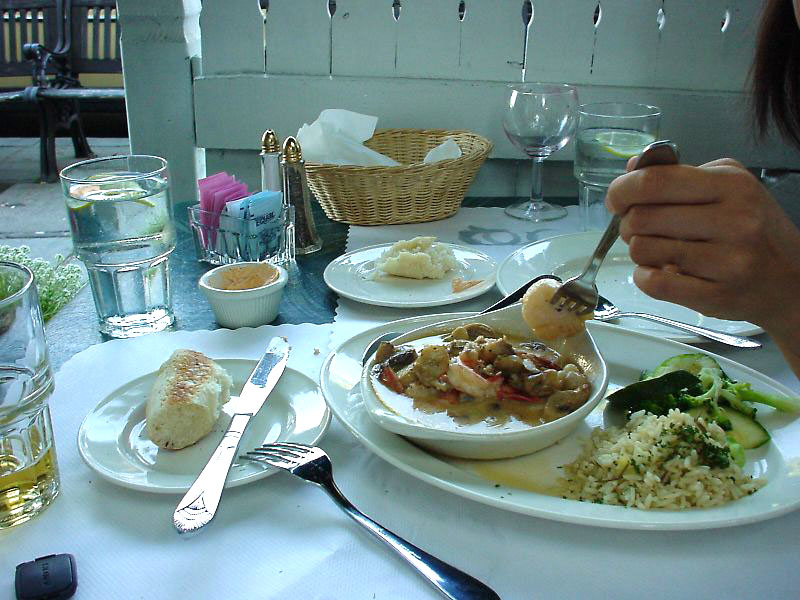 お昼前に出かけ、 サラトガ通りでランチ。 ここもきれいなところだった。 ウエイトレスの英語がフランス プロバンスなまりなので、 聞いてみるとプロバンス出身だそう。 姫とフランス語で話しが弾んでいた。 日差しは強く、日なたは少し暑い。