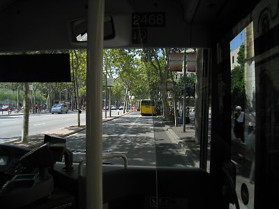カタルーニャ音楽堂にも行きたかったが他の予定もあるのでパス。 今日は日曜日、デパートやCD屋はお休み。 スペインで今流行っているスペイン語のCDを買おうと思っていたのに残念。 モンジュイックの丘のミロ美術館へ行くのにちょうどいいバスを見つけた。 しかし、バス停が分からず探している内に、その50番バスは行ってしまった。 20分待ってようやく乗った。