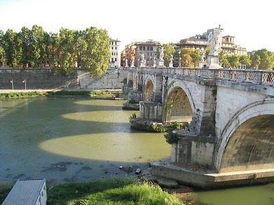 テベレ川にかかるサンタンジェロ橋を見下ろす |