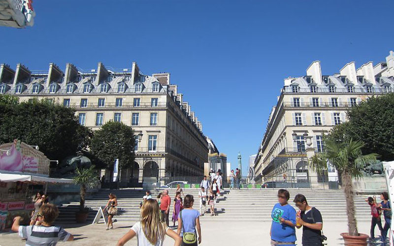 夜10時前、チュイルリー公園の通りを帰ってくる 我々は1階(日本の2階)の右から6つ目の窓の部屋