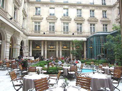 前回泊まった InterContinental のエントランス 改装工事中の Ritz Paris の張りぼての前で一休み