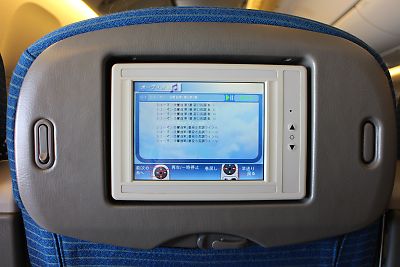 飛行機はとなりが空席で2人で3席のエコノミーベッド席。