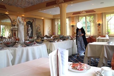 近くの丘の上のホテル&レストラン Hotel Seiserhof Cafe-Gaststätte へ向かう。