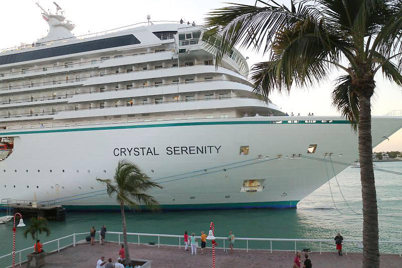 5時半、ようやく部屋へ。 フロントで「今なら夕陽が見えます」と言われた部屋のバルコニーで出てみると、 巨大なクルーズ客船が視界を遮っていた。 えっ、これじゃ海も夕陽も見えないじゃん。 Oceanfront を予約した意味がないじゃん。 口コミで調べると「毎朝船がきて夜には出て行く」そうだ。